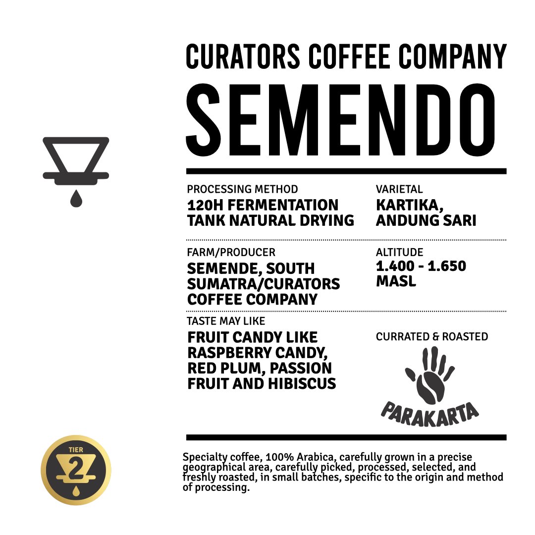 Rasakan keunikan Semendo, Sumatera Selatan, dengan kopi istimewa dari Curators Coffee Company ini. Ditanam di dataran tinggi vulkanik, biji kopi ini menjalani fermentasi tangki anaerobik selama 120 jam, yang menghasilkan rasa manis, kompleksitas, dan profil juicy yang kaya rasa buah. Dikeringkan secara alami dengan cermat, proses ini mempertahankan cita rasa yang kaya dan kejernihan yang sempurna di dalam cangkir.