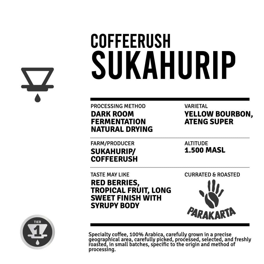 Ditanam di dataran tinggi Sukahurip yang subur, Jawa Barat, kopi istimewa ini merupakan hasil racikan inovatif Coffeerush. Dipanen dengan tangan pada tingkat kematangan puncak, buah kopi menjalani fermentasi ruang gelap yang cermat, di mana suhu dan tingkat kegelapan yang terkontrol menghasilkan lingkungan mikroba yang kaya—menghasilkan cita rasa buah yang kompleks dan kaya.